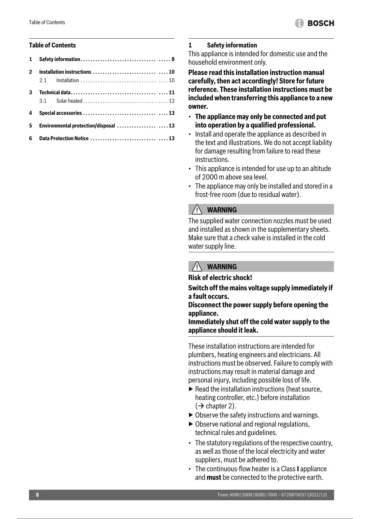 1 Safety information. . . . . . . . . . . . . . . . . . . . . . . . . . . . . . . . . . . . 8