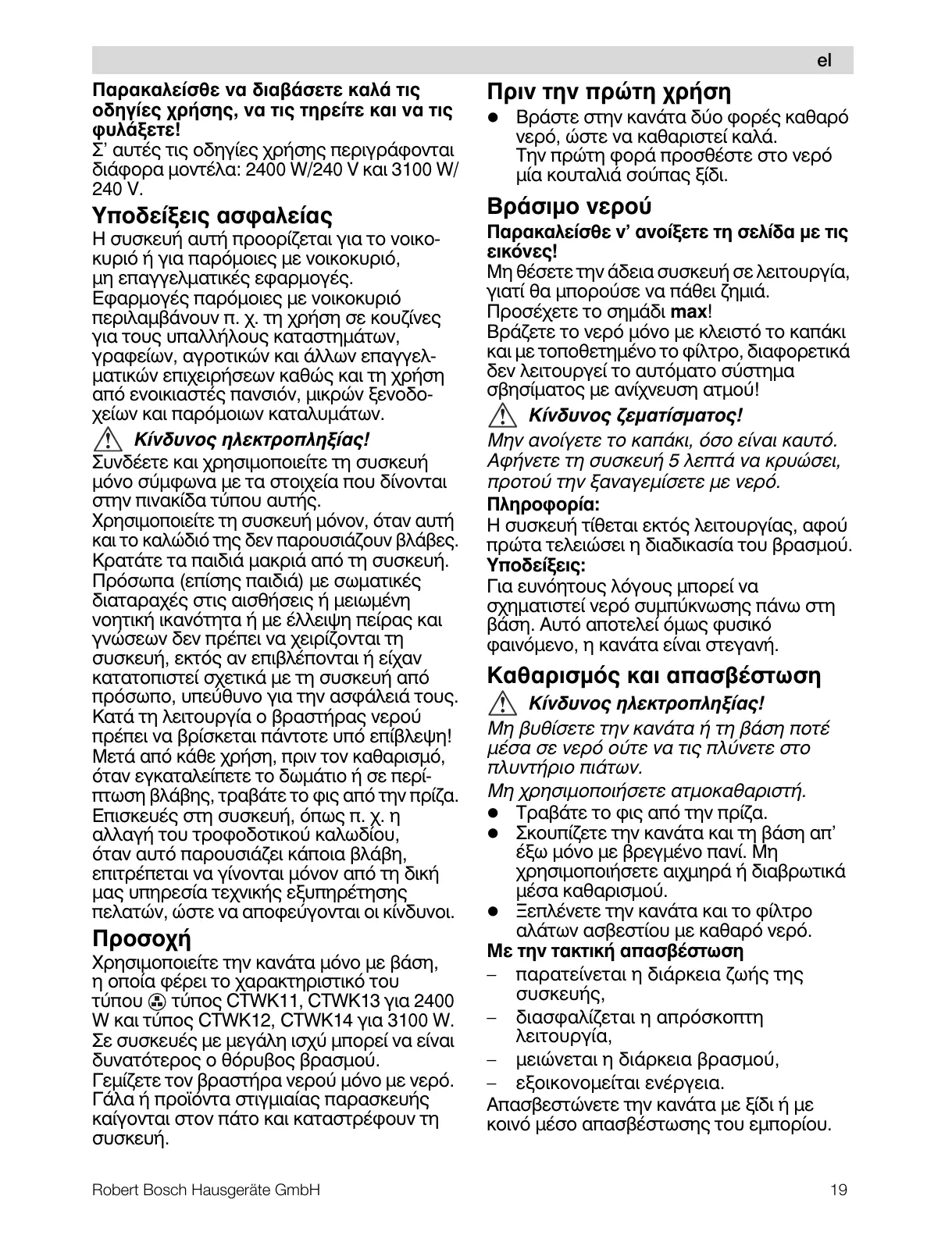 äéÜöïñá ìïíôÝëá: 2400 W/240 V êáé 3100 W/