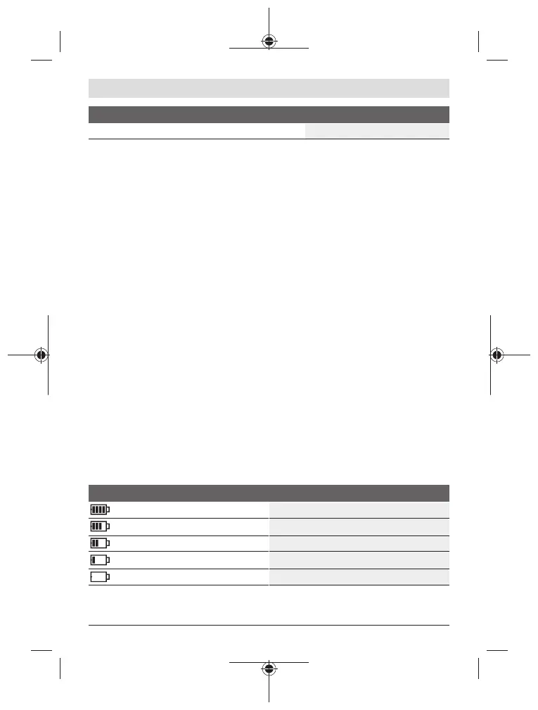 Az alábbi táblázat az elemek kapacitása / üzemelési ideje és a (3)kijelzőn megjelenő