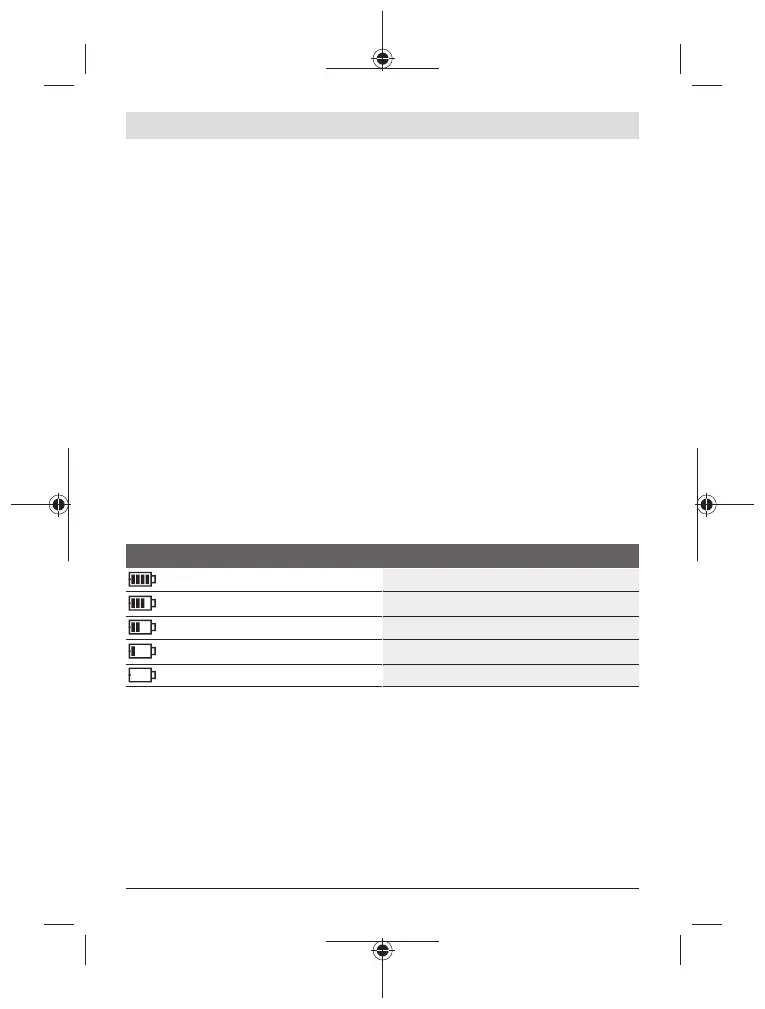 Sledeća tabela prikazuje vezu između kapaciteta/trajanja rada baterija i prikaza stanja