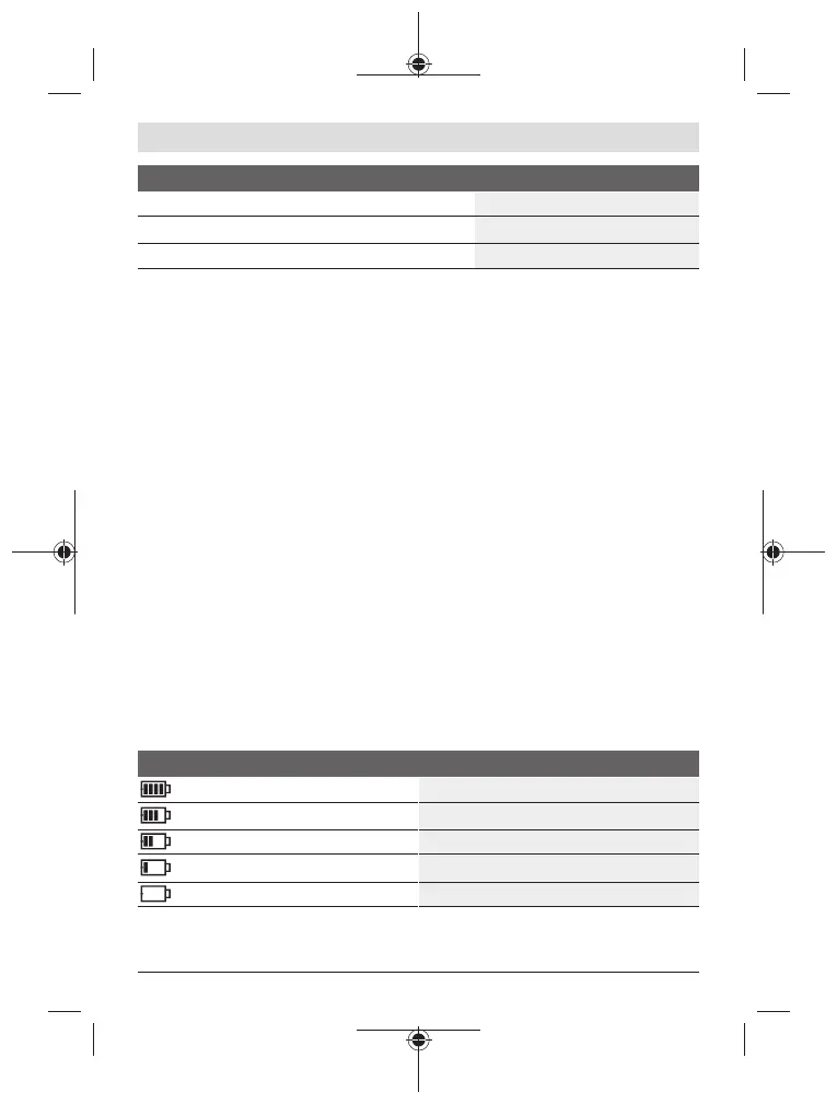 Järgnevas tabelis on kujutatud seos patareide võimsuse/tööaja ja ekraanil (3) oleva