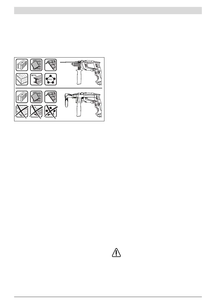 For driving screws, always position the “Drilling/Impact Drill-