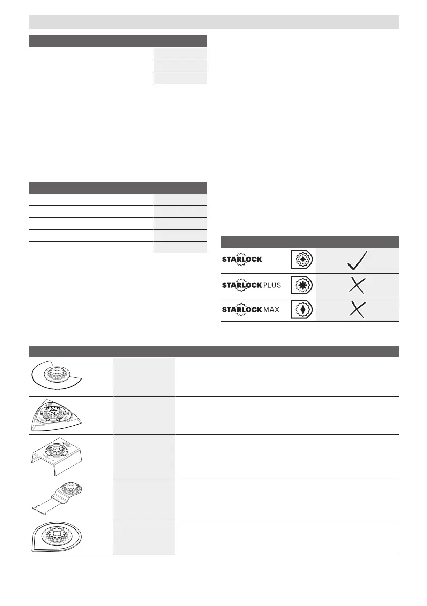 Seuraava taulukko näyttää esimerkkejä käyttötarvikkeista. Muita käyttötarvikkeita löydät Boschin laajasta tarvikevalikoimasta.