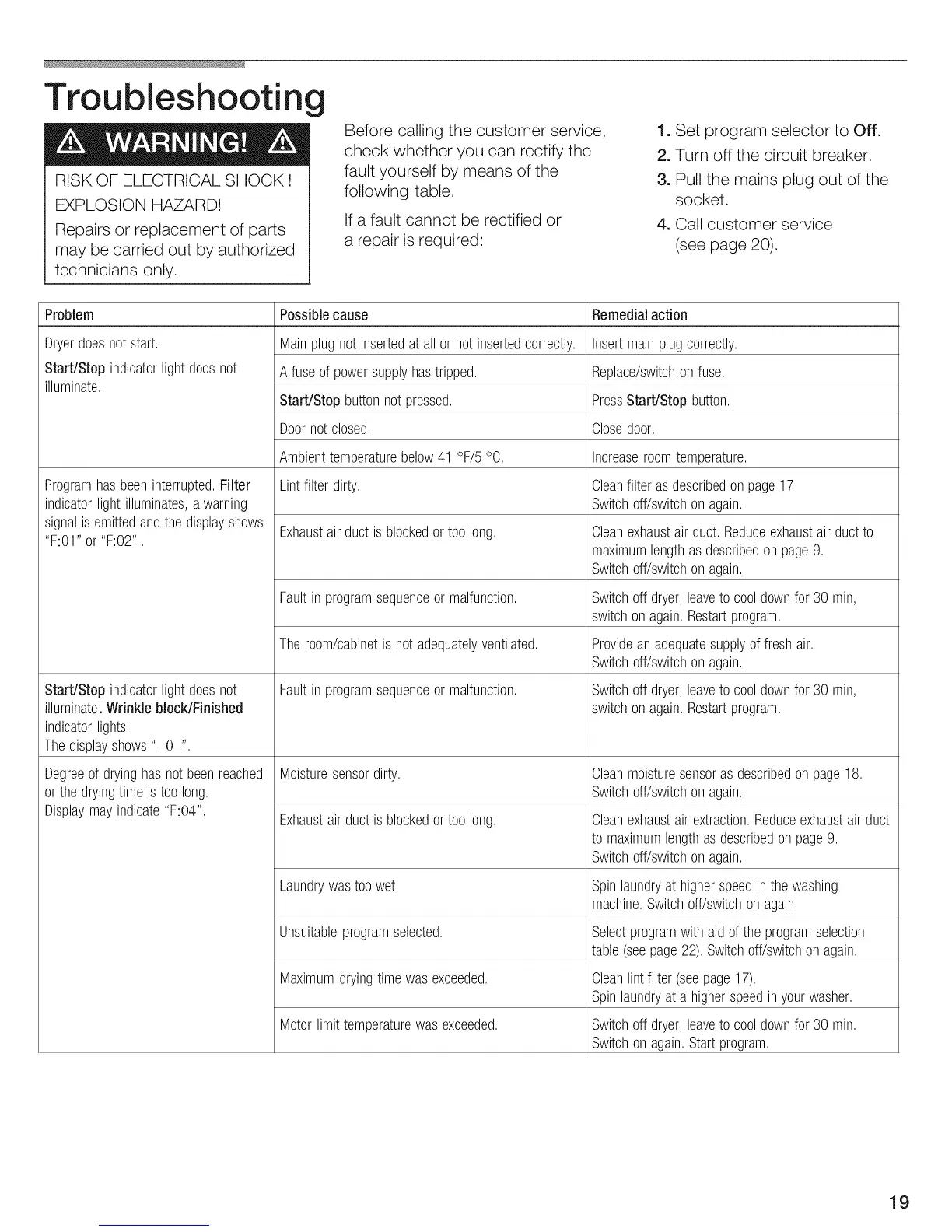 Maximumdryingtimewasexceeded. Cleanlintfilter (seepage17).