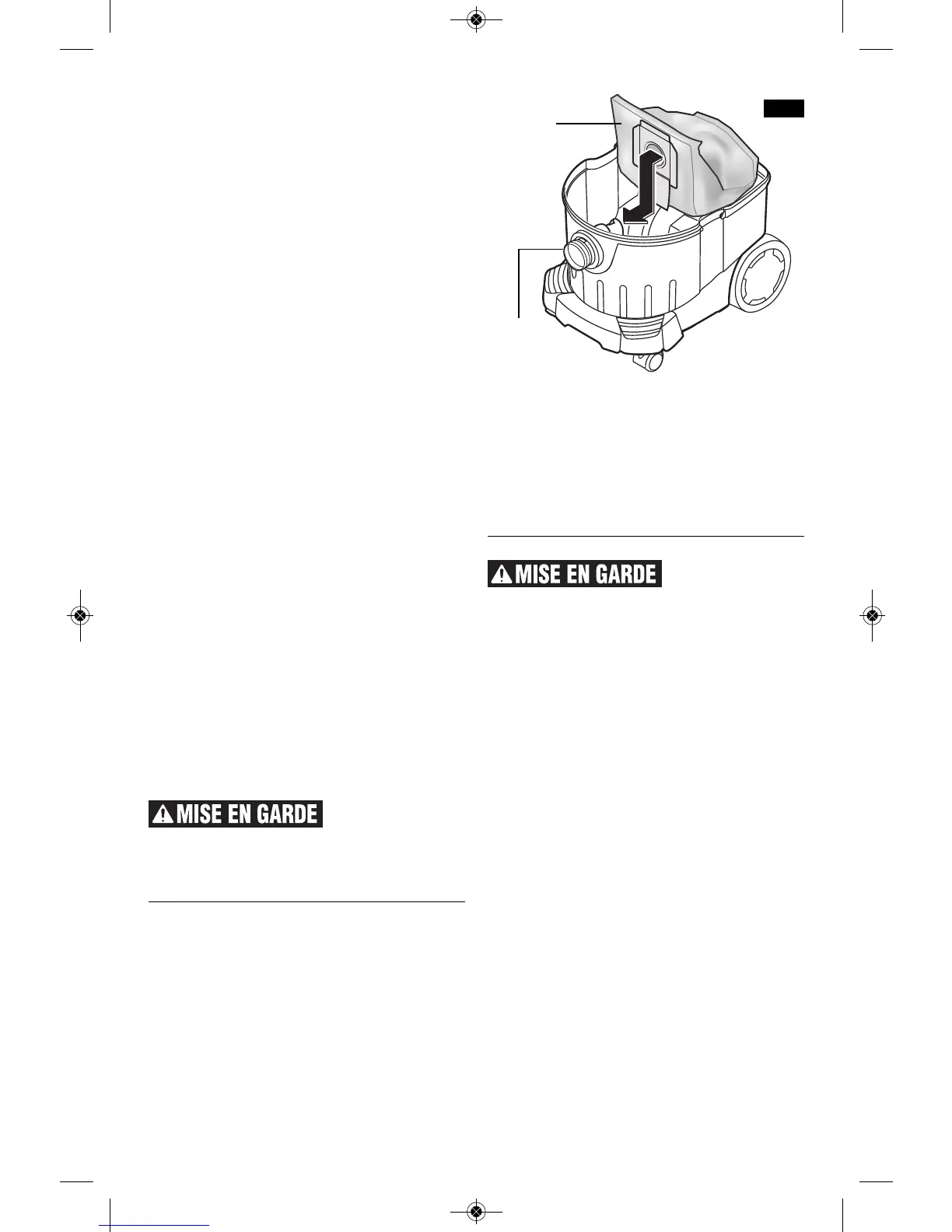 • Voir la section ASPIRATION DE DÉCHETS HUMIDES