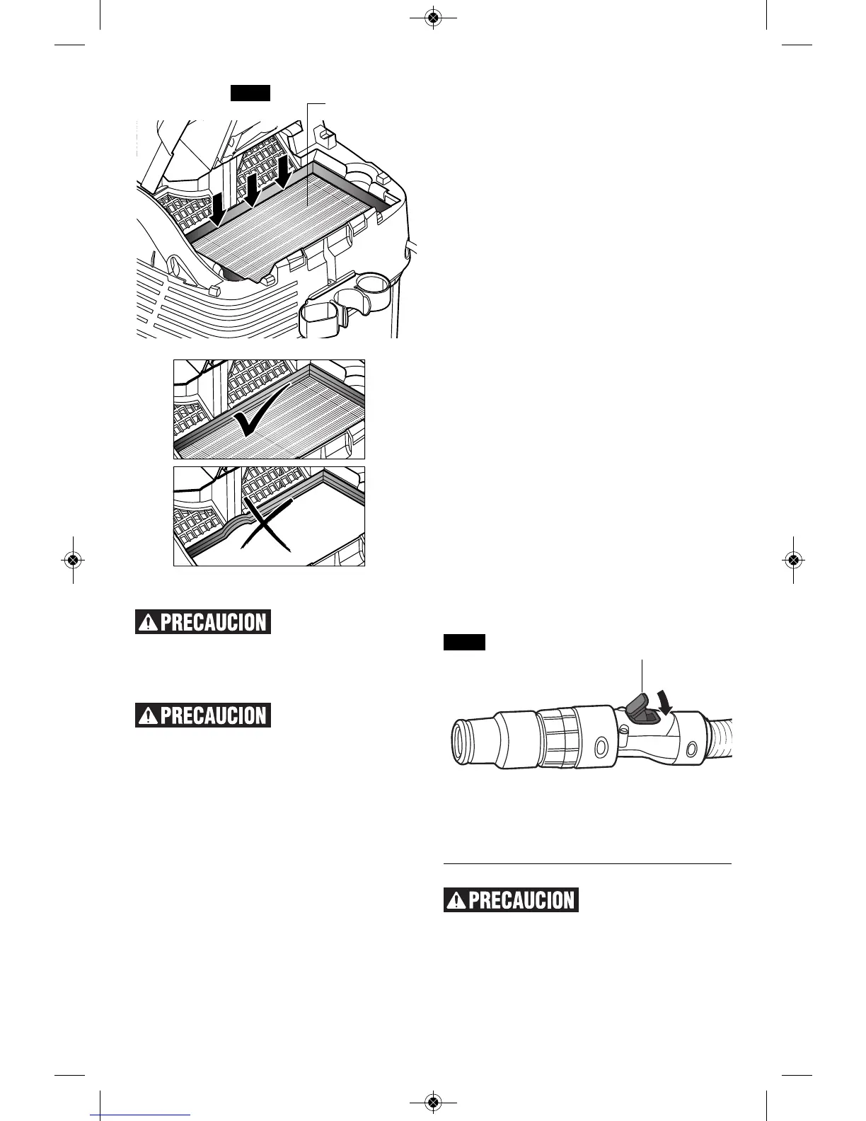 área de trabajo. Antes de utilizar la limpieza del filtro,