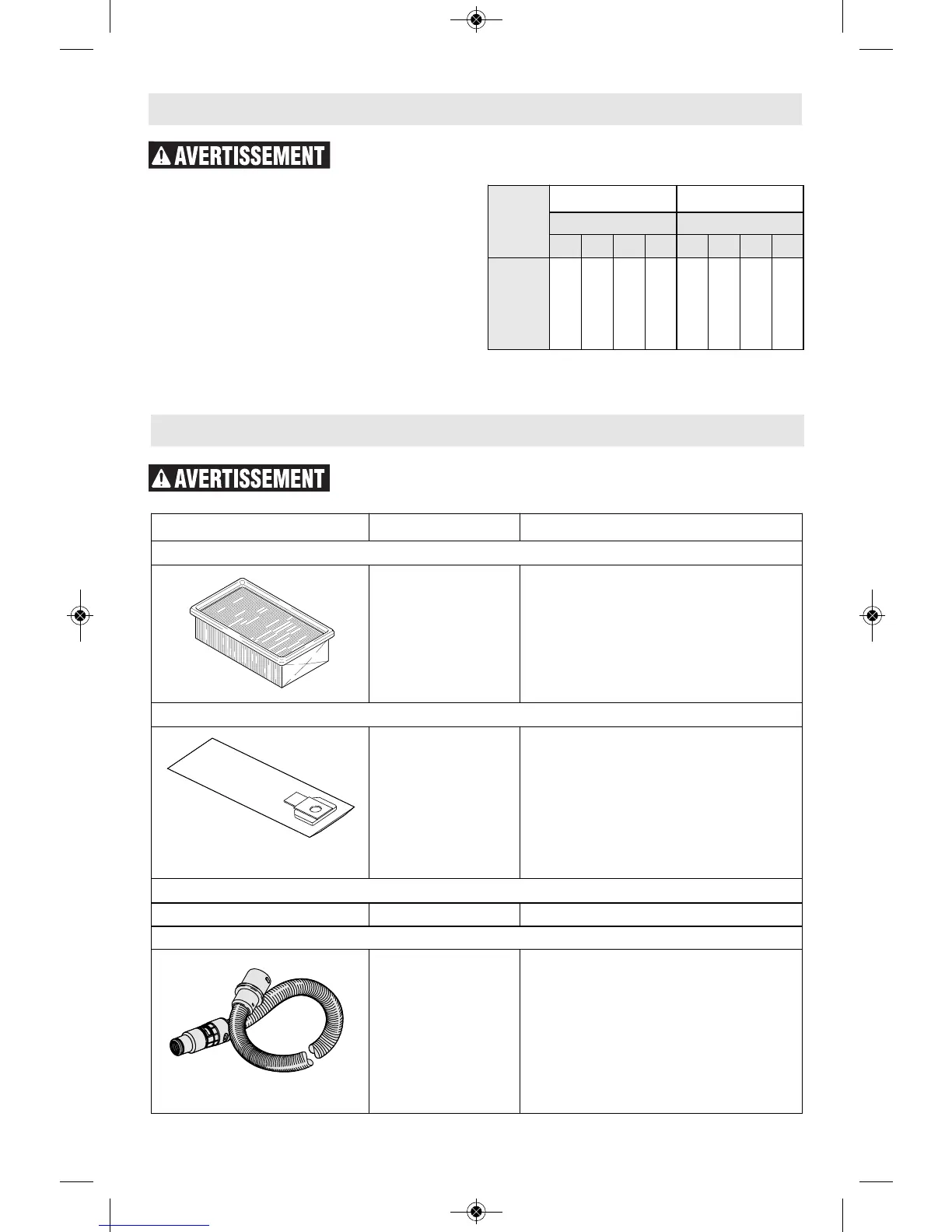 Filtres de l’extracteur de poussière