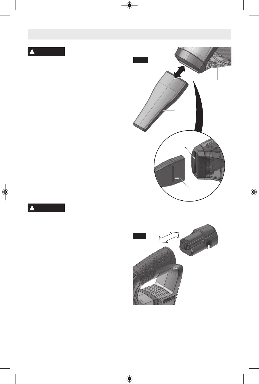 paquete de batería hacia el interior de la herramienta