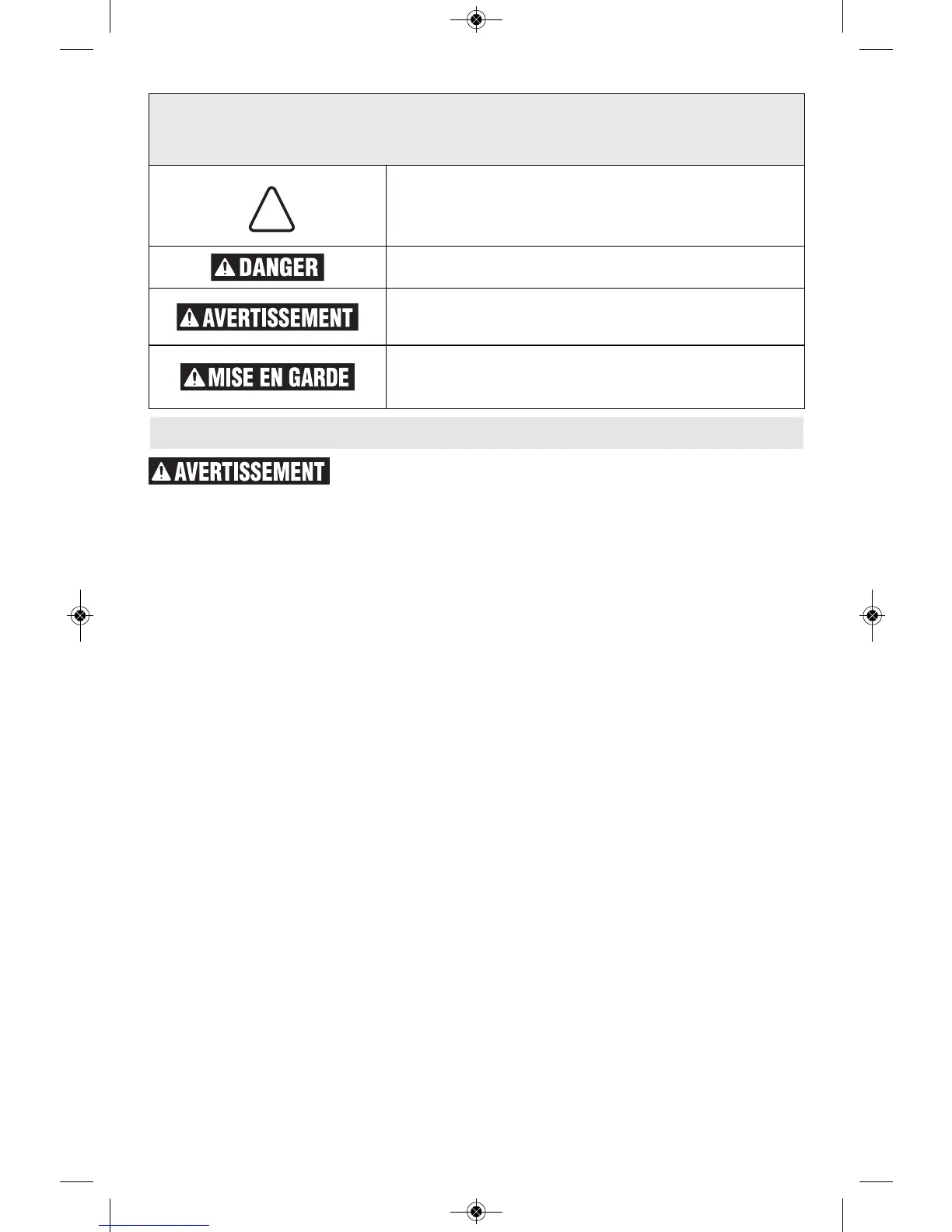 MISE EN GARDE, conjointement avec le symbole d’alerte en