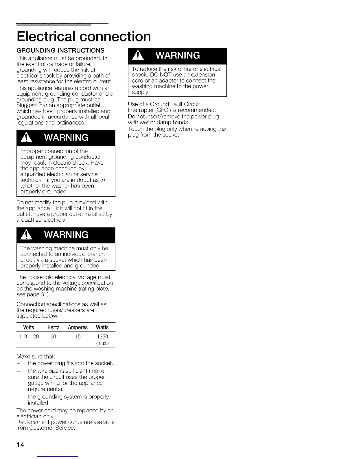 The washing machine must only be