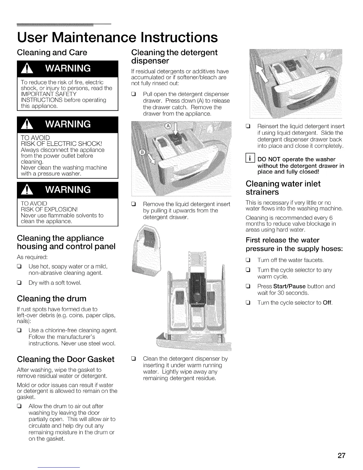 Never clean the washing machine