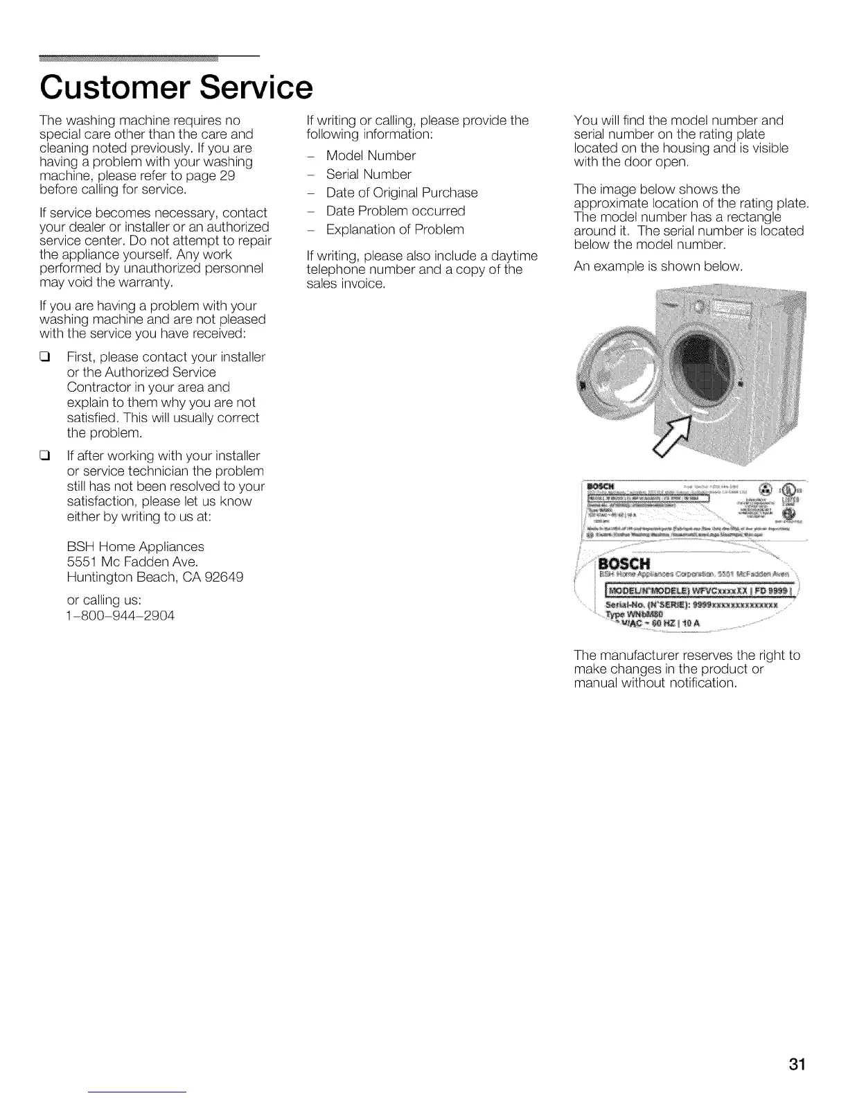 The manufacturer reserves the right to