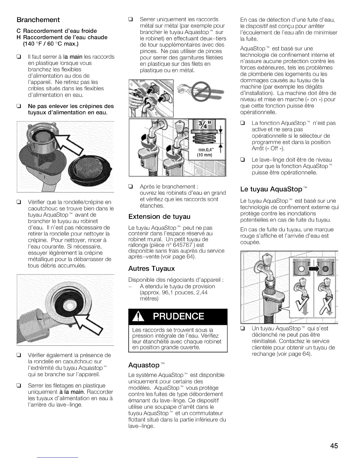 Le tuyau AquaStop TM peut ne pas