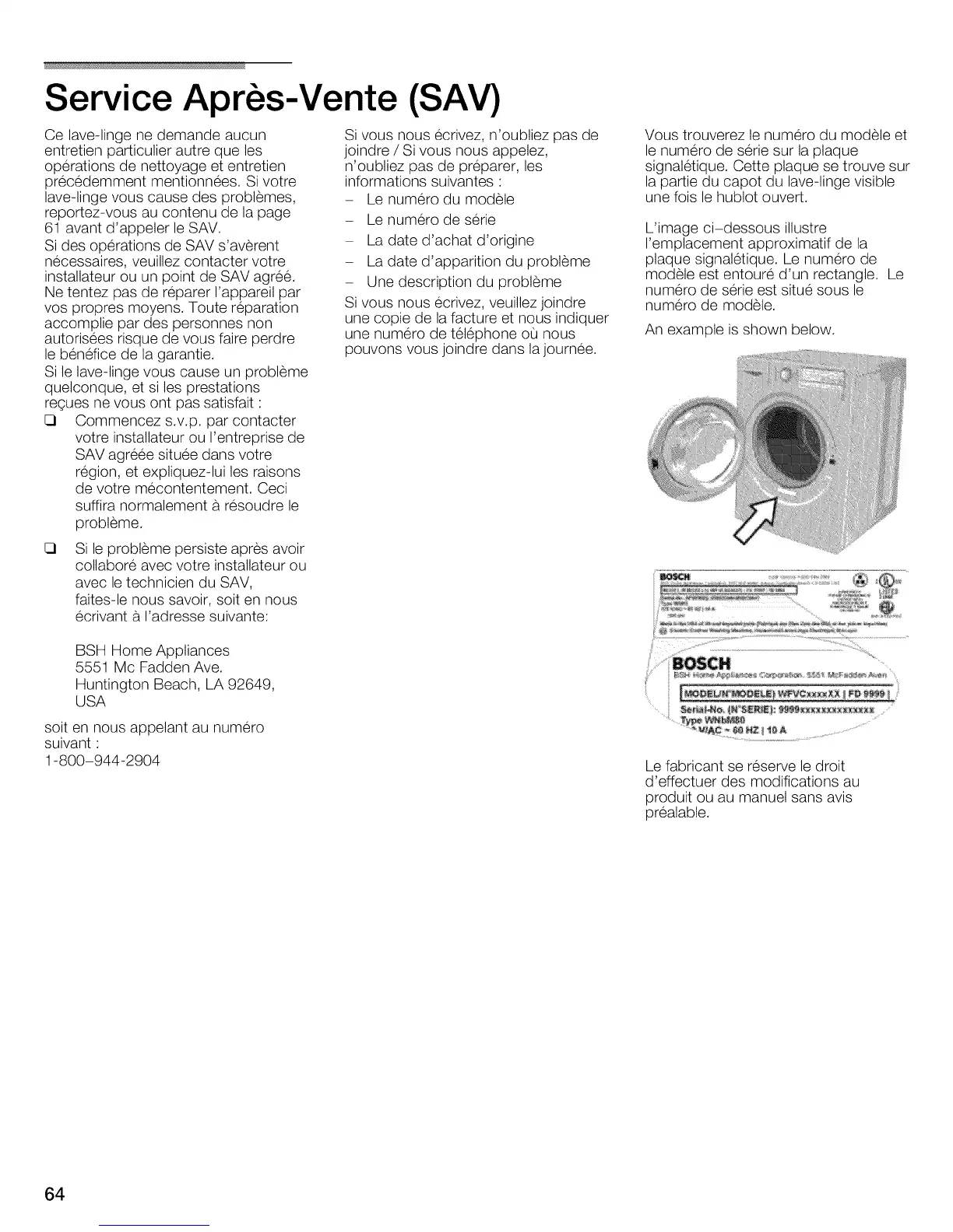 Le fabricant se reserve le droit