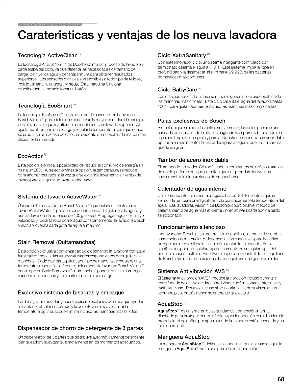 0nicamentelas lavadoras Bosch Vision T, que incluyen el sistema de