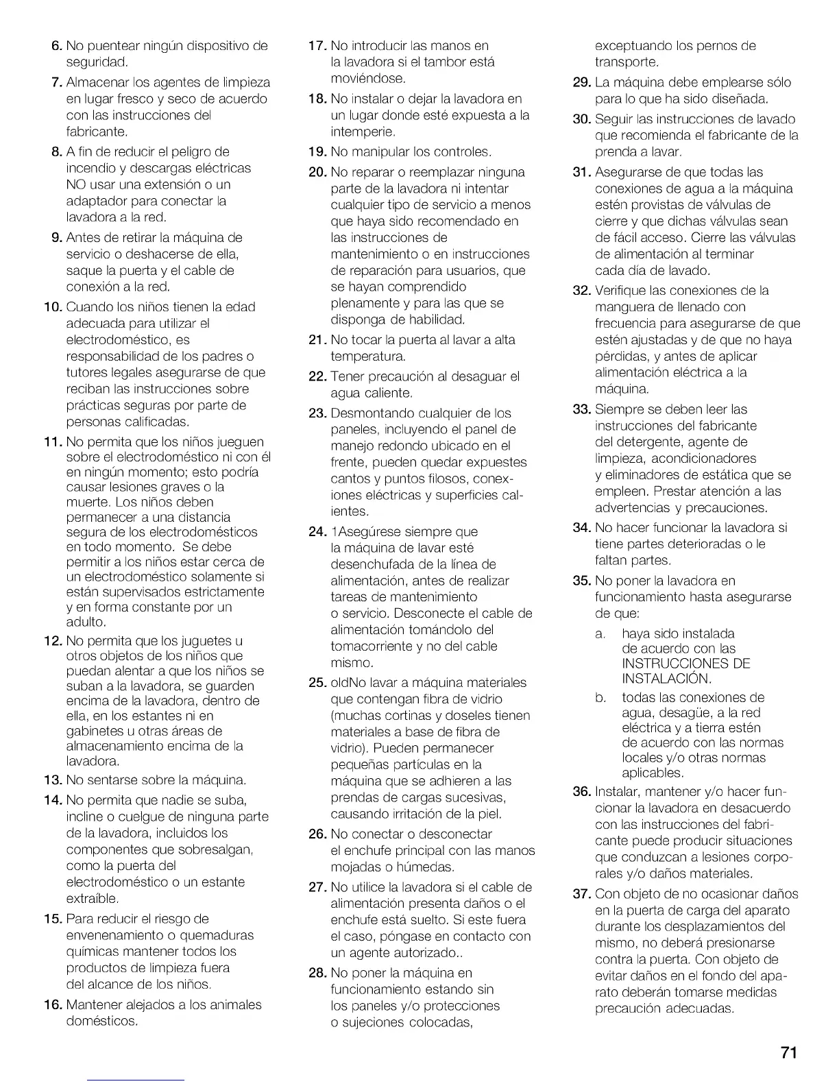 34. No hacer funcionar la lavadora si