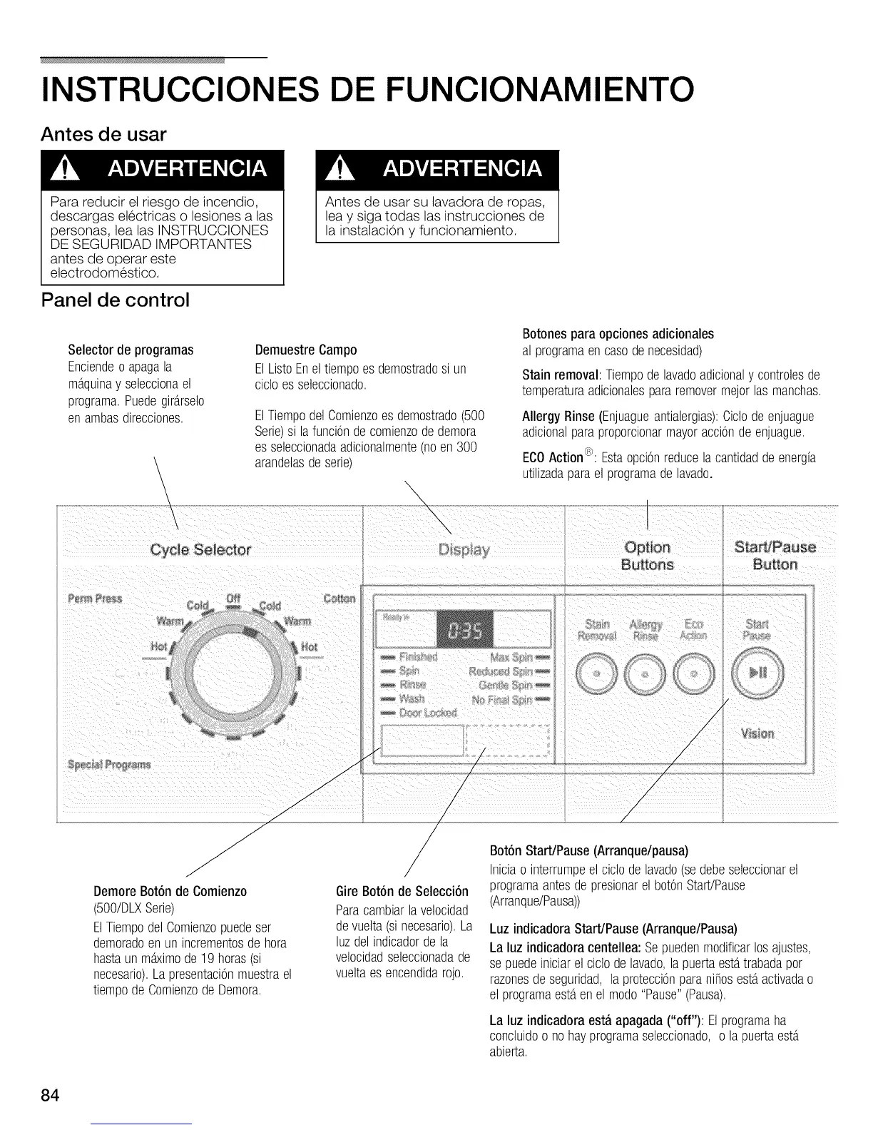 Luz indicadoraStart/Pause(Arranque/Pausa)