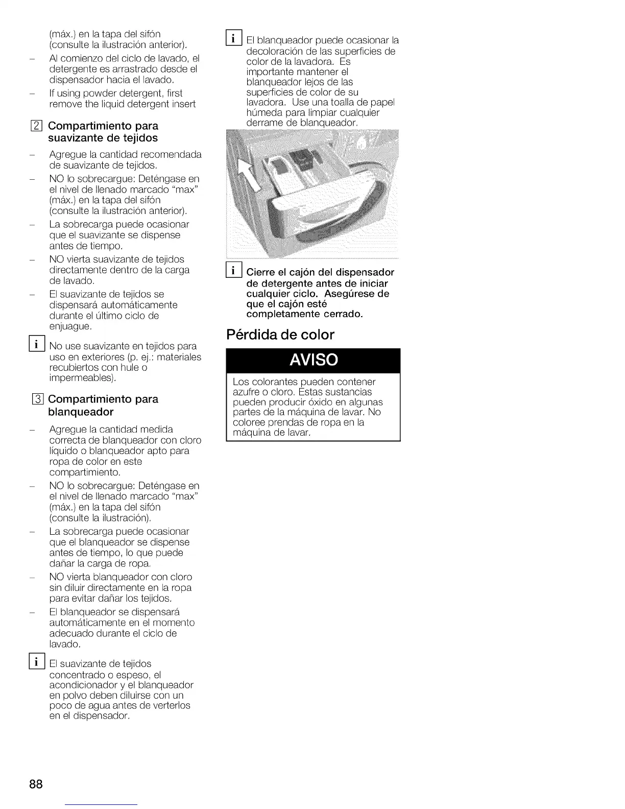 - NO vierta suavizante de tejidos