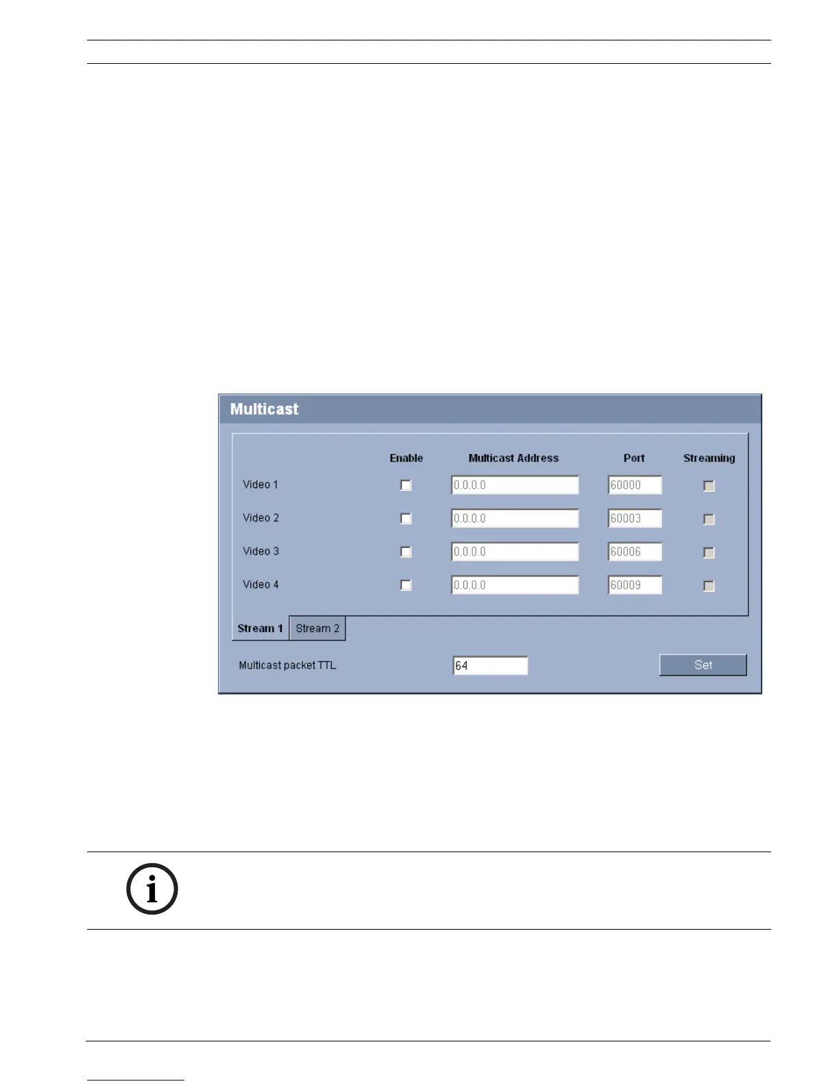 You can enter a dedicated multicast address and port for each stream. You can switch
