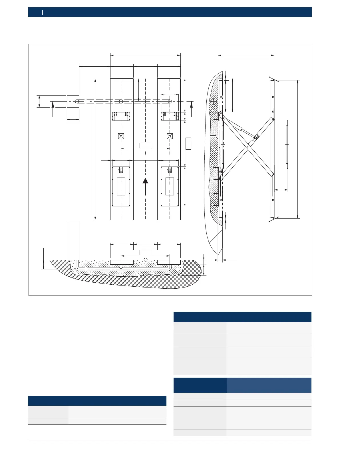 Fig. 29: Schema fondamenta 3 (tutte le misure sono espresse in mm. Freccia = direzione di salita)