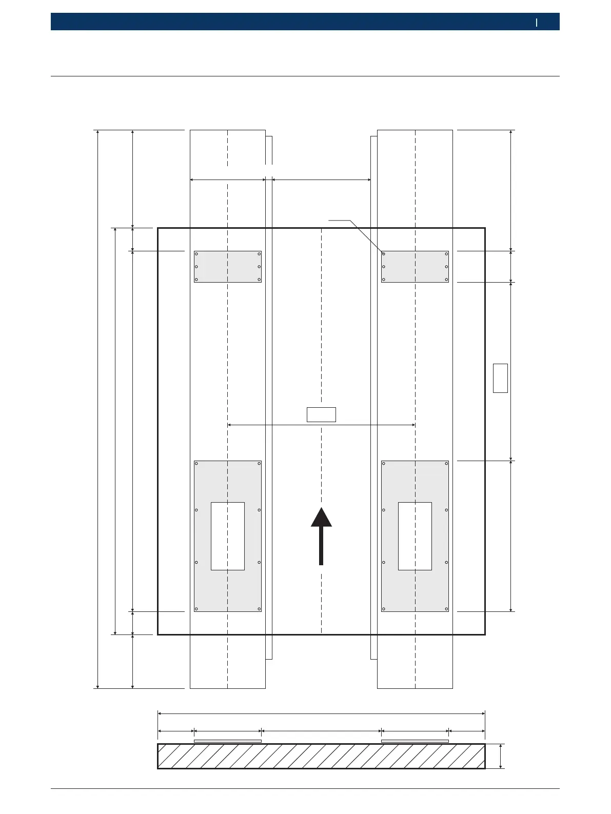 Fig. 26: Fundamentplan 1 (Alle Maße in mm. Pfeil = Auffahrrichtung.)