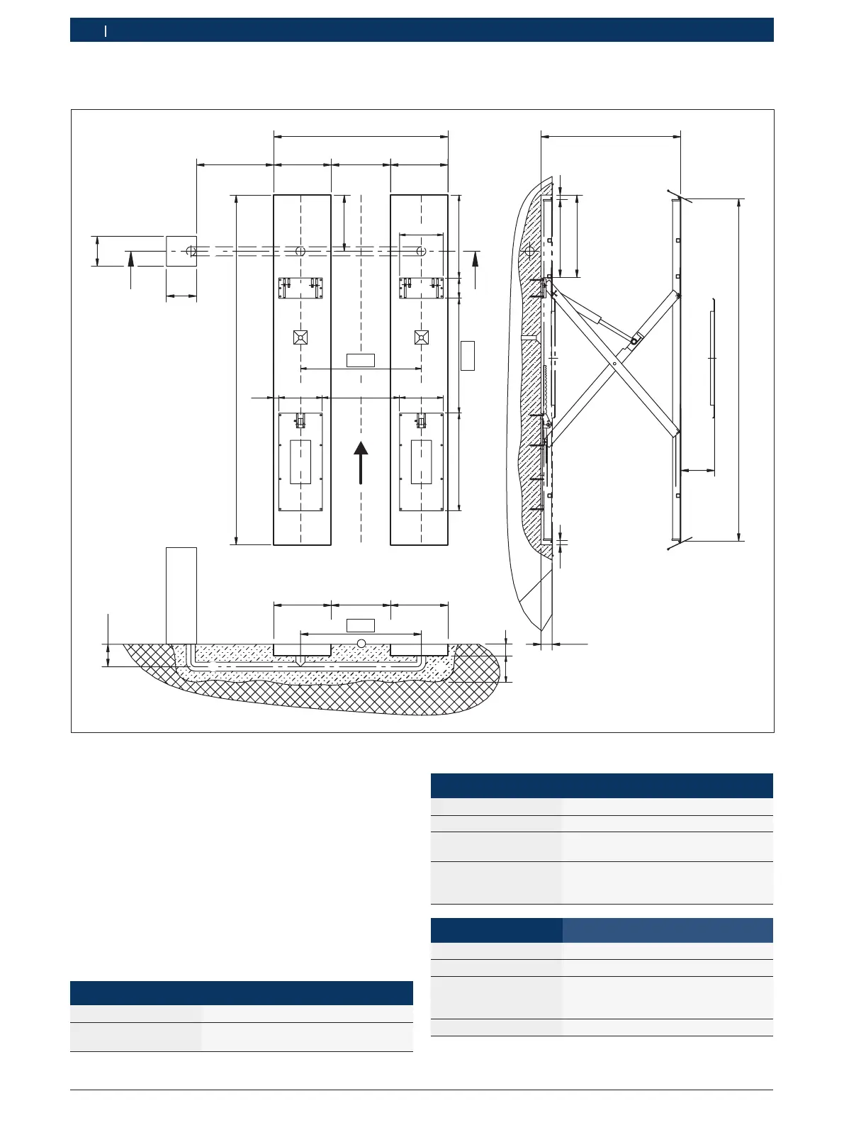 Fig. 29: Fundamentplan 3 (Alle Maße in mm. Pfeil = Auffahrrichtung.)