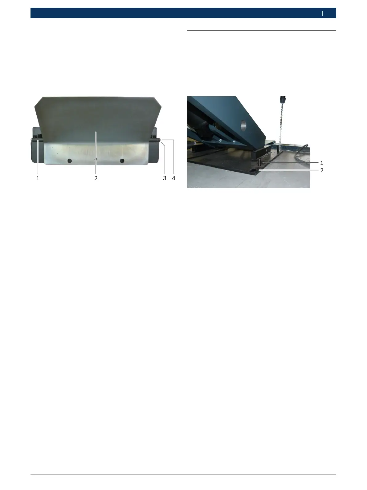 1. Position the roll-off guard (2) at the front end of the
