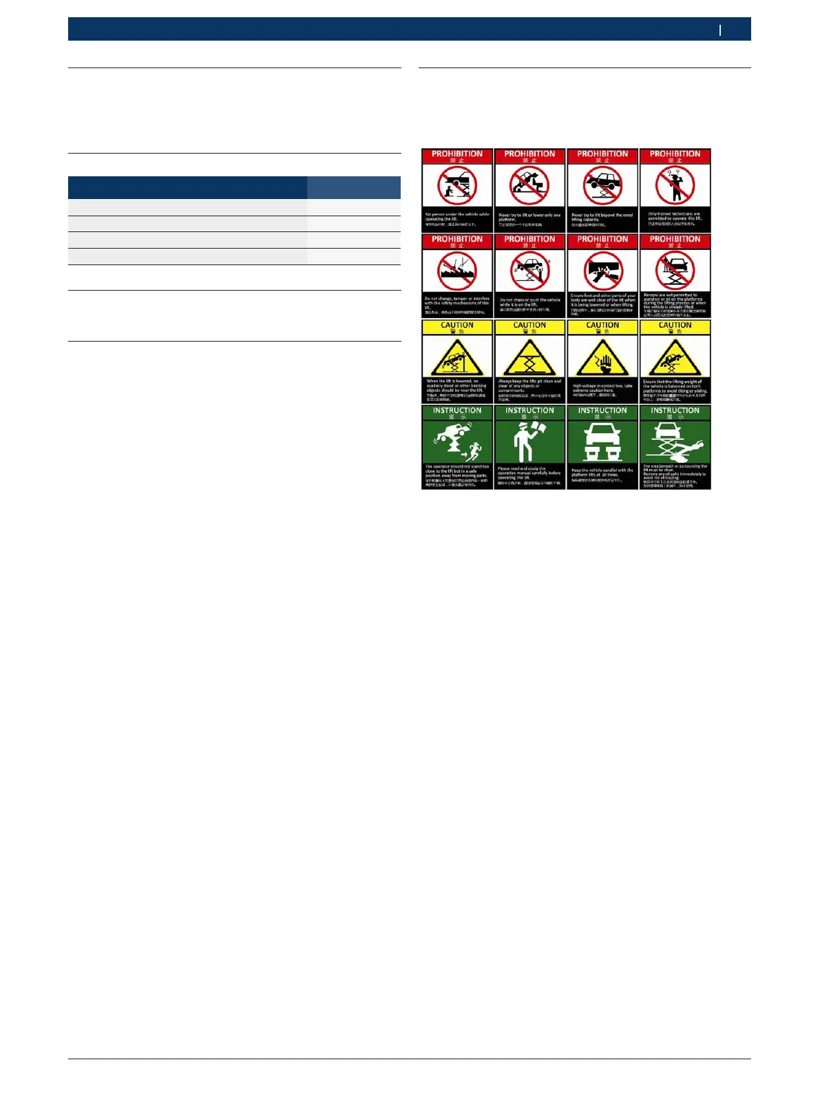 禁止8:车辆已被举升时或者在举升机升降过程中禁止有人站
