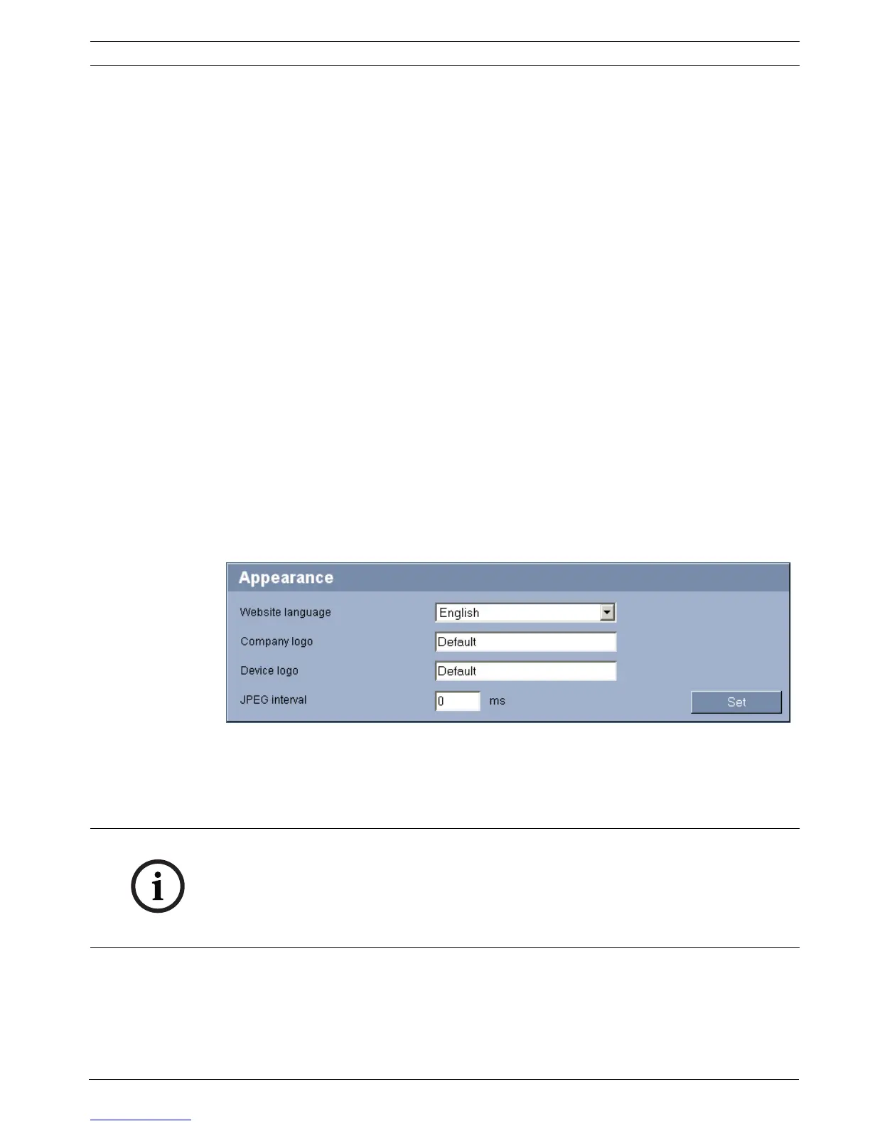 On this page you can adapt the appearance of the web interface and change the website