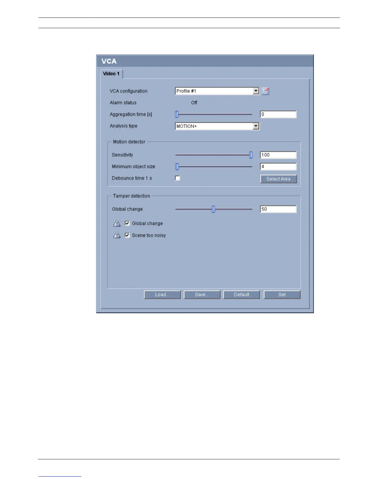 1. Select a VCA profile and enter the required settings.