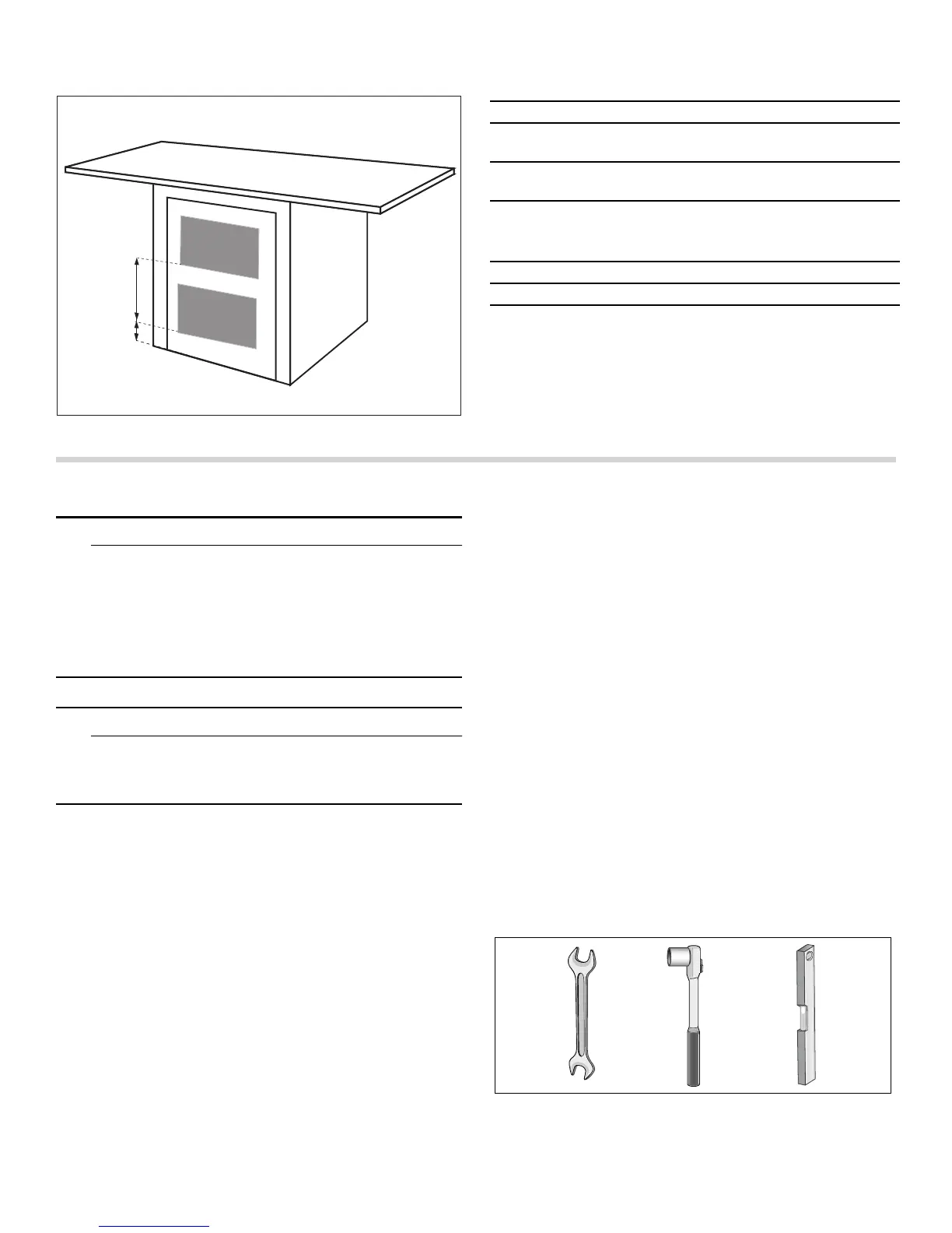 Debajo de la superficie de trabajo (menos deseable) Si se cubre la parte delantera del aparato, deben
