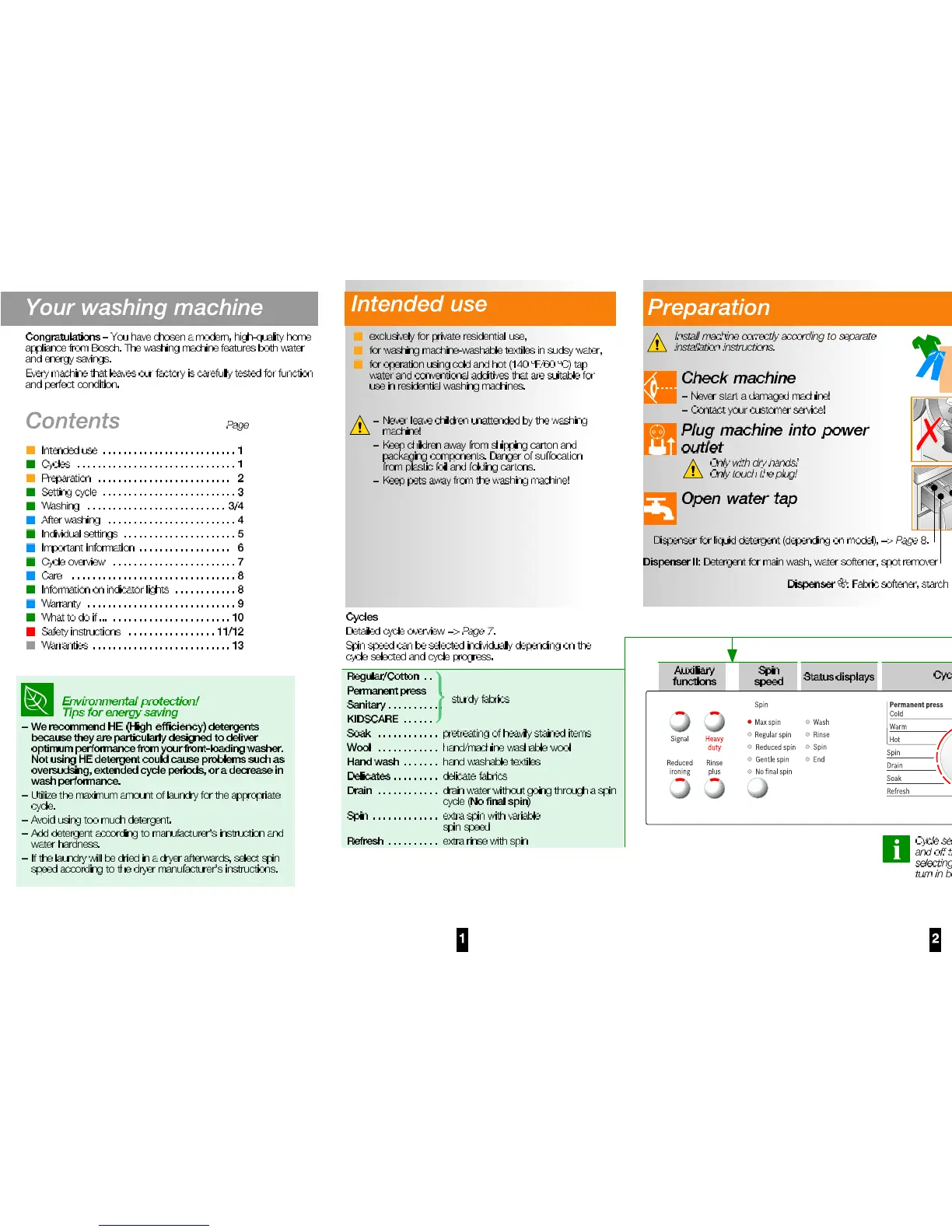 Bosch WAS20160UC - Intended Use and Safety Precautions; Appliance Purpose; Child and Pet Safety; Preparation and Setup