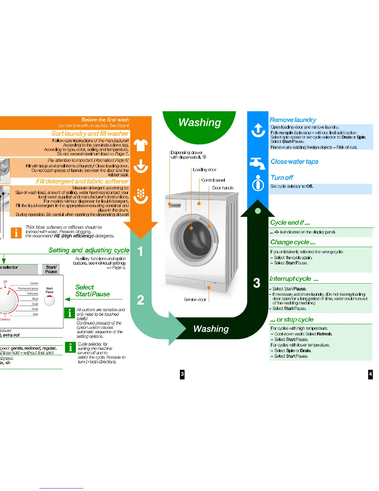 Bosch WAS24460UC - Washing; Sort laundry and fill washer; Fill detergent and fabric softener; Setting and adjusting cycle
