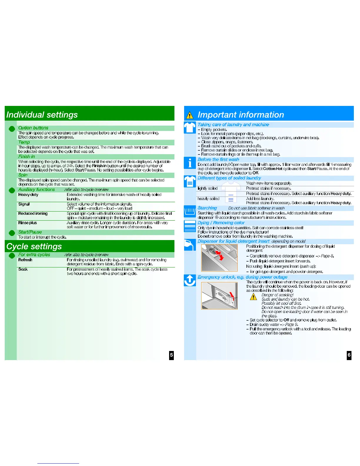 Bosch WAS24460UC - Individual settings; Option buttons; Temp; Finish in