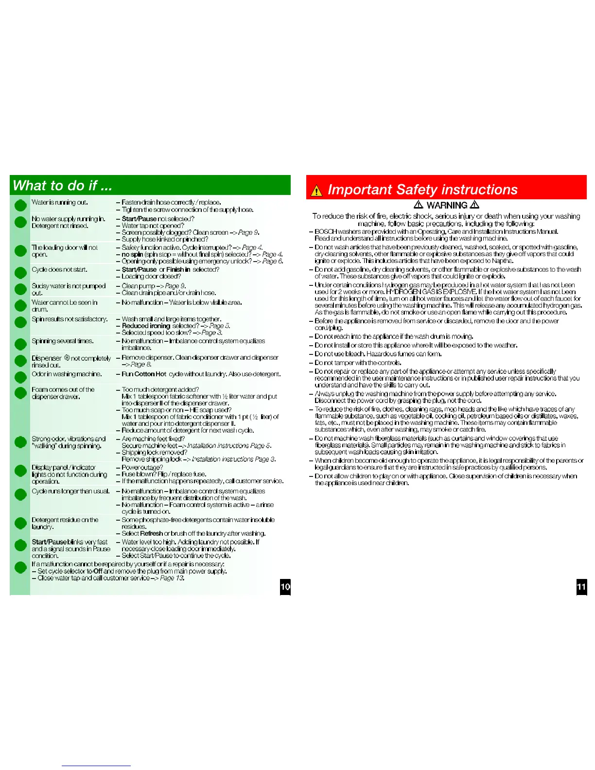 Bosch WAS24460UC - What to do if...; Water is running out.; No water supply running in.; Detergent not rinsed.