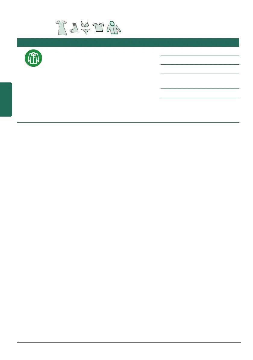 Programme/Type of washing Settings/Information
