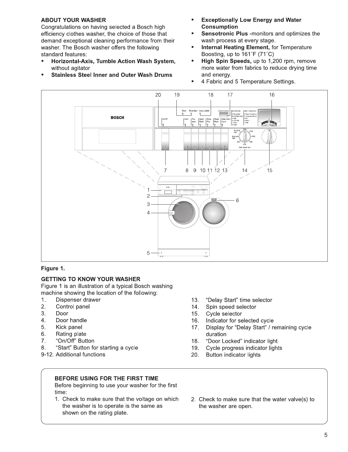 Bosch WFK 2401 - About Your Washer; Getting to Know Your Washer; First-Time Washer Operation