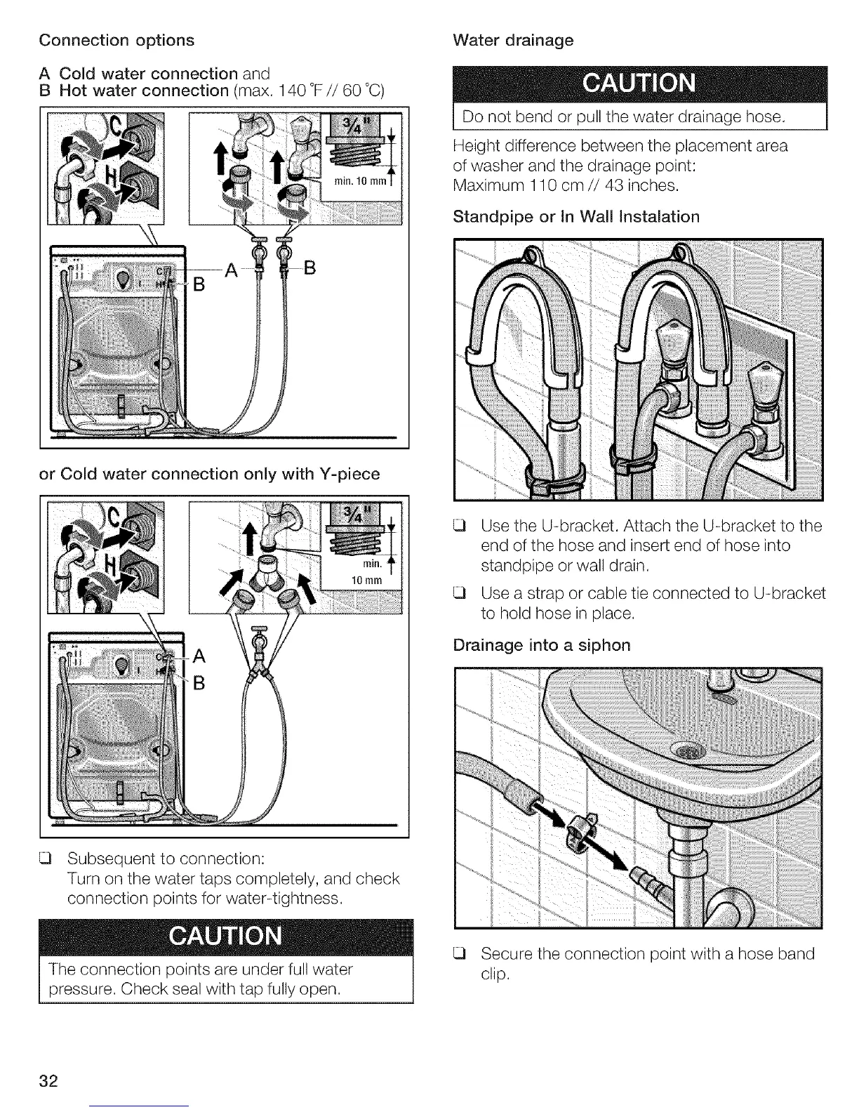 B Hot water connection (max,140°F//60 °C)
