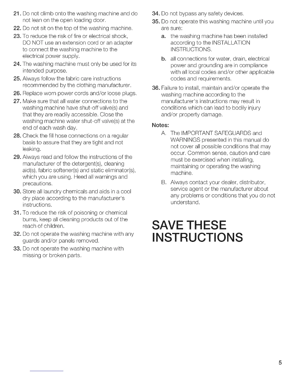 22. Do not siton the top of the washing machine.