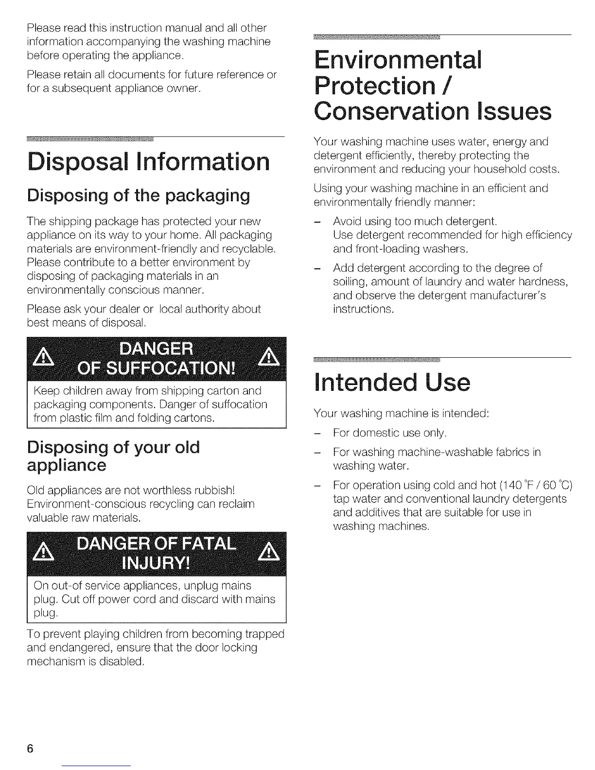 Your washing machine is intended: