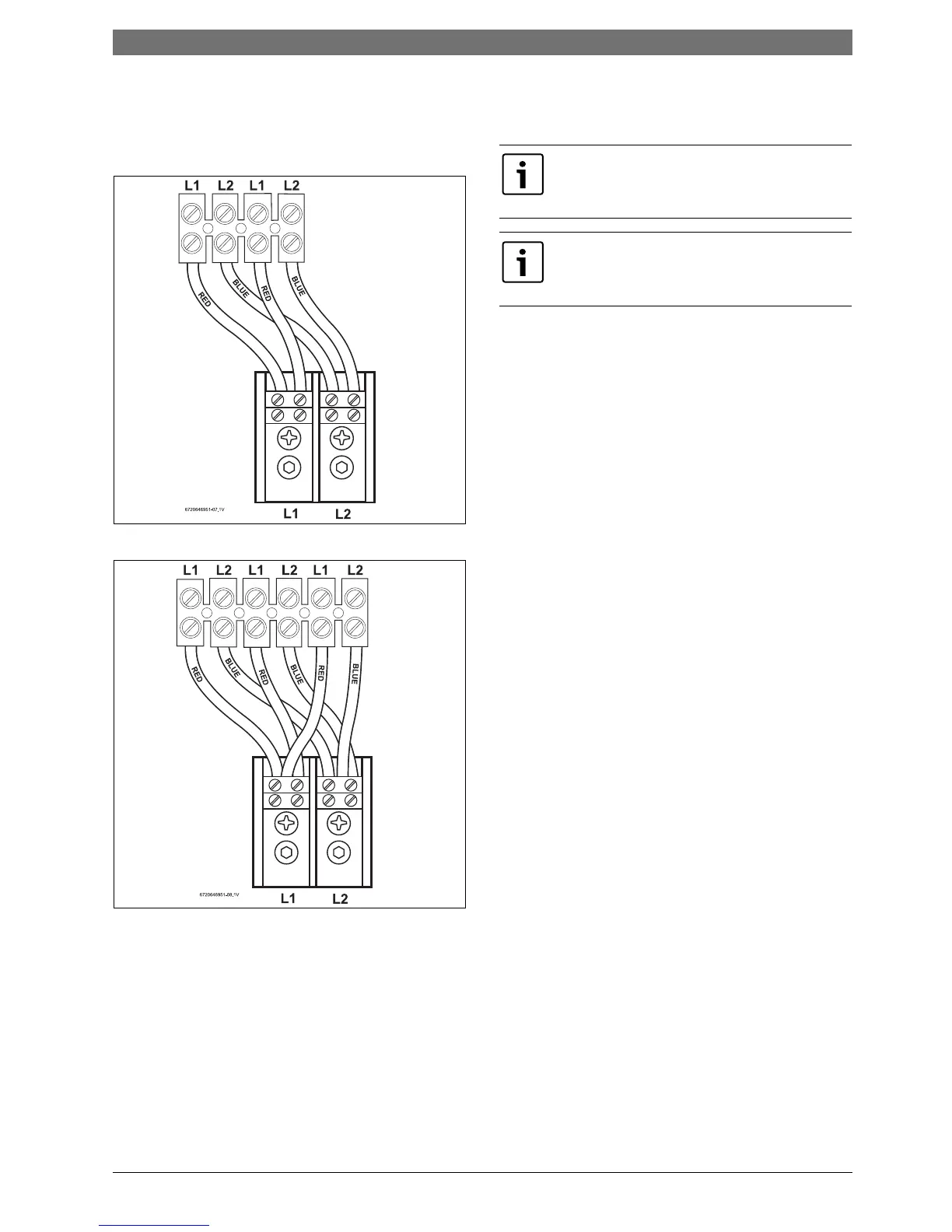 B Connect the blue wires from the right hand terminal
