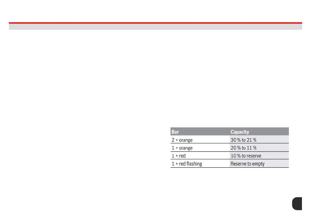 represents 20 % capacity and each white bar represents 10 % capacity.
