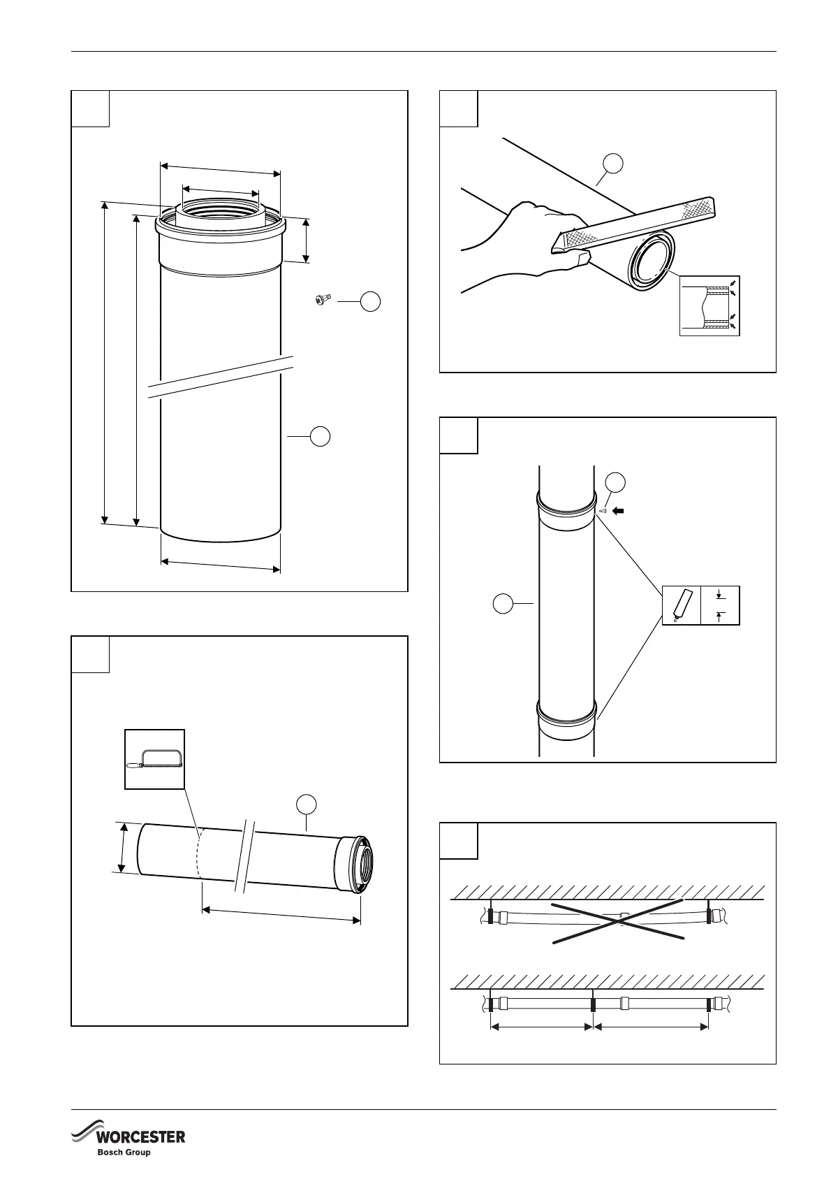 Bosch Worcester - Component Identification and Dimensions; Flue Extension Dimensions; Assembly and Fitting Diagrams