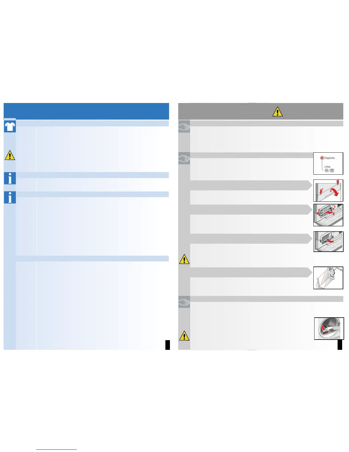 or if Depósito/Limp. o/p(Container/Clean) flashes after cleaning the fluff filter.