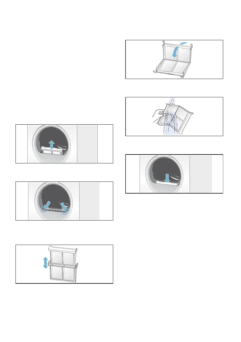 7. Dry the fluff filter, close it and reinsert