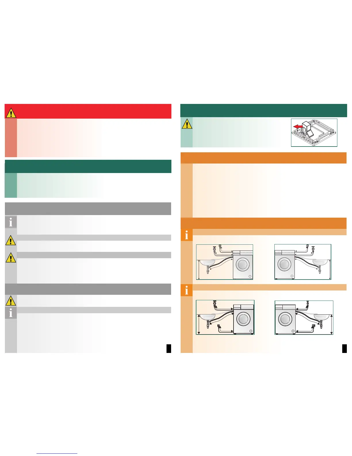 – Warning: Frozen hoses may tear/burst. Do not install the washing machine outdoors and/