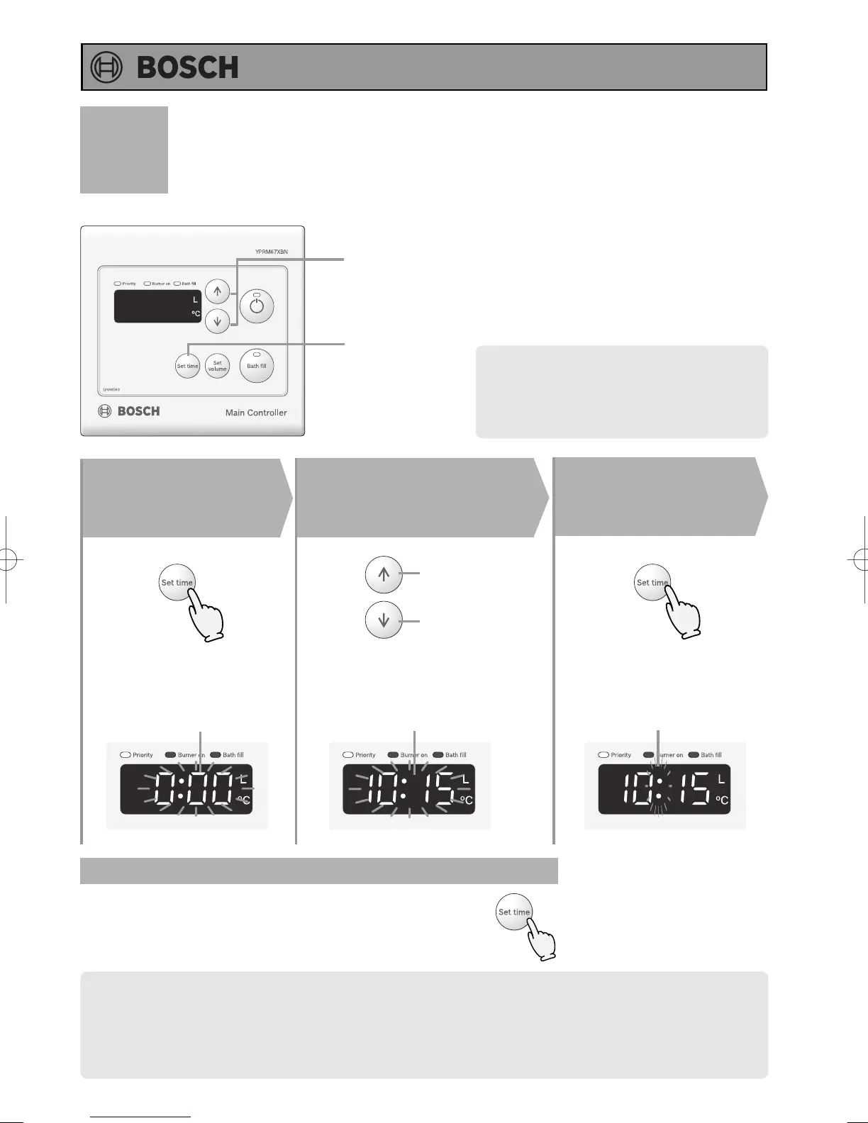 If the Time set button is pushed when the hot water is being used or a high temperature (60°C) is set, the