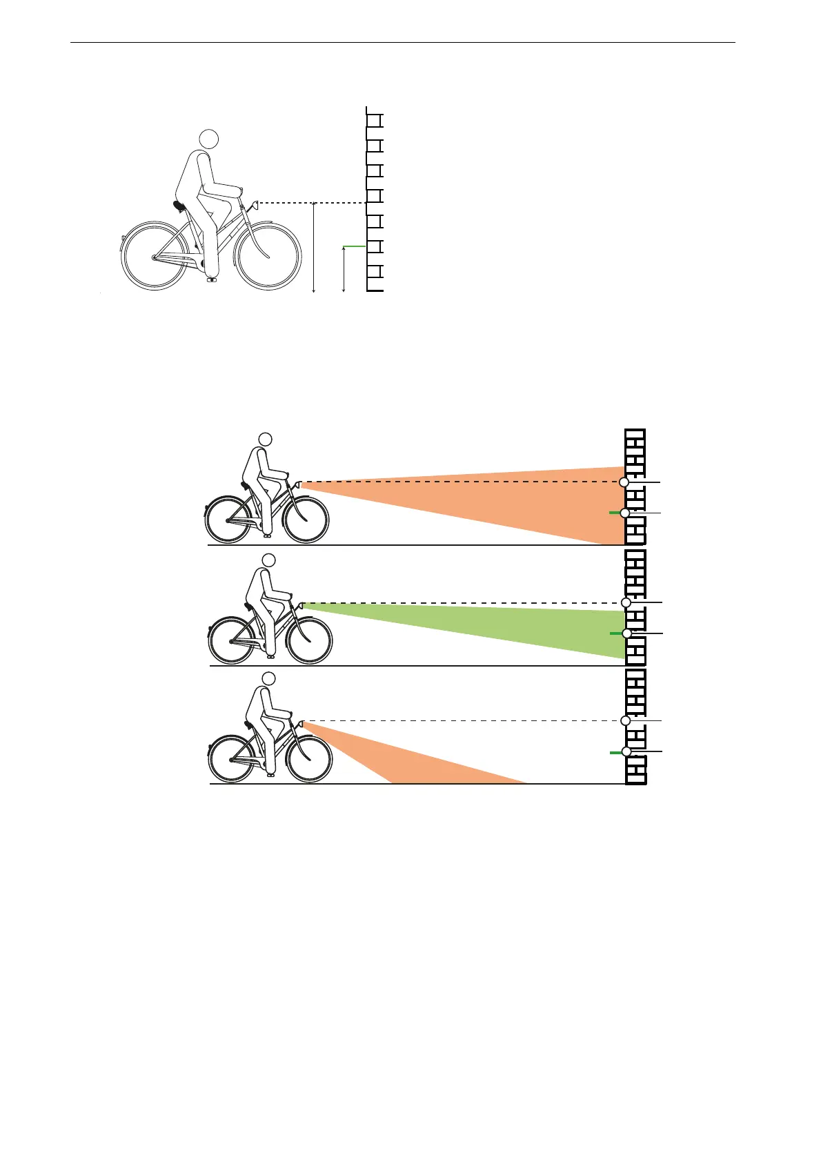 (I) if the upper edge of the light beam is above the headlight height mark (1), the riding light will dazzle.