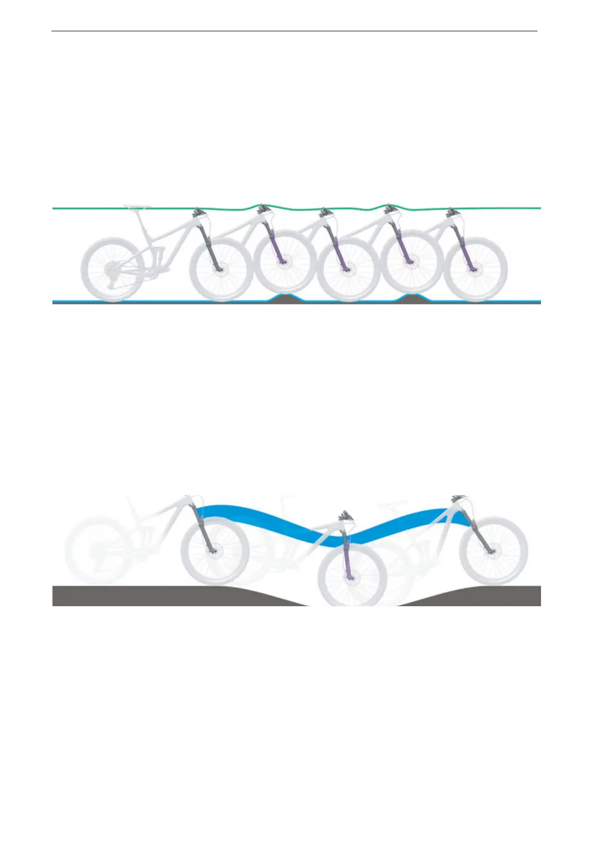 terrain (green line) when riding over bumps. The