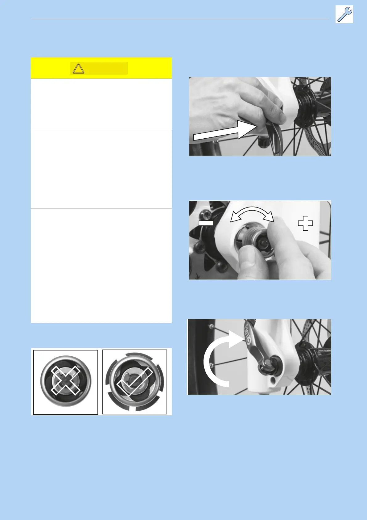 Never fasten a quick release using a tool (e.g.